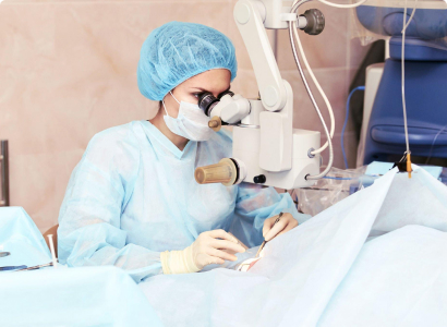 Le cabinet assure la prise en charge chirurgicale de la cataracte grâce à des techniques modernes et sécurisées, consistant à remplacer le cristallin par une lentille intraoculaire de haute précision pour améliorer la vision, une chirurgie rapide, sûre et très efficace
